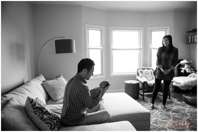 Little newborn Zane was so adorable for our session! He made so many adorable expressions, we were all laughing! I love offering in home sessions so moms and dads don’t have to pack the bags, pack the milk, pack up the baby and figure out the car seat. Just let me come over and you don’t have to do anything! This mom was so grateful to not have to walk down her stairs! I love their beautiful San Francisco home. Check out the adorable nursery book shelf too!   Mom said, “Thanks Emily! We absolutely LOVE all of the photos! Thanks again for capturing these precious moments for us.”