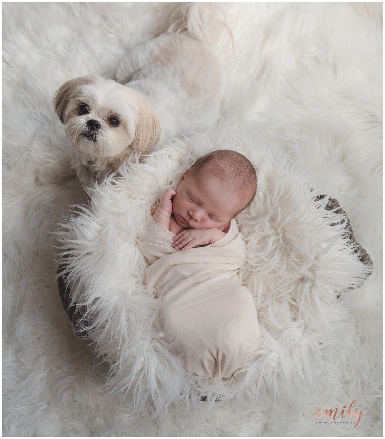 I was so lucky to walk into their home to find beautiful light, amazing decor and also sweet little Henry! Henry was amazing. He was asleep when I arrived so we were able to get right to work. I set up a little basket for him to get snugly. Well, guess who cozied up right next to him? Their adorable puppy, Kaida. She laid down right next to him to make sure he was safe. So adorable! I look forward to seeing Henry grow!