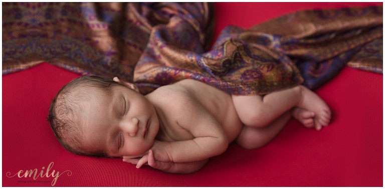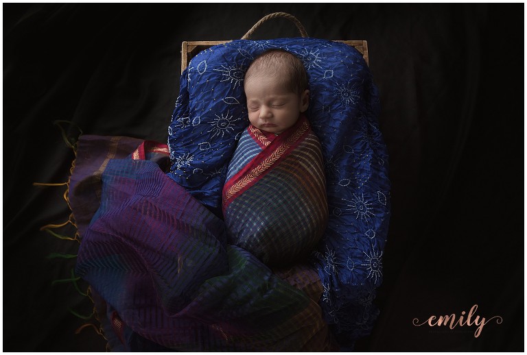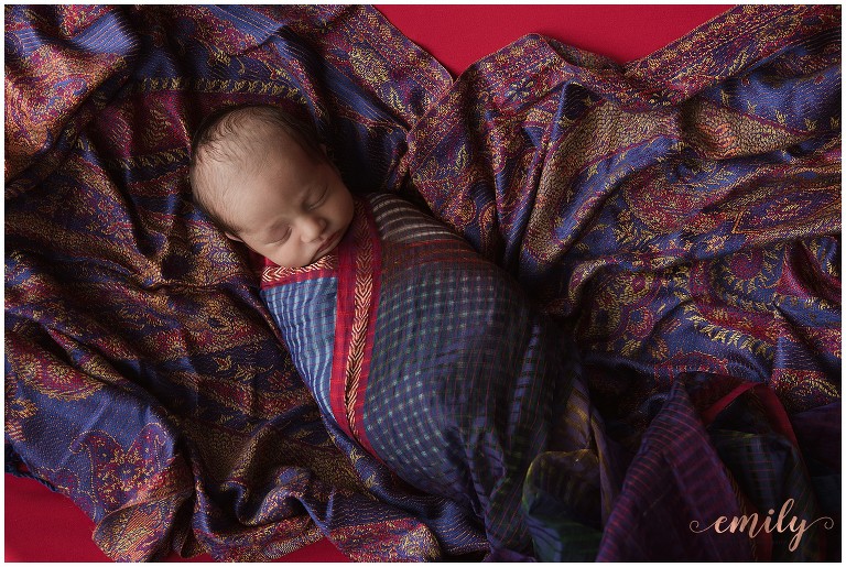 Sweet little newborn Mihir. I love his long eyelashes (from his daddy!) and his sweet expressions. Mom and dad wanted to incorporate more bold colors than I typically work with and I was thrilled with the result. Mom was gifted some beautiful Sari’s from her in-laws and we were able to wrap Mihir in them. Check out all of the deep bold colors in this session!